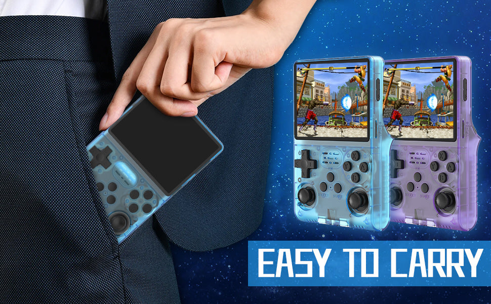 - 【R40S PRO new system】1.5GHz 64-bit RK3326 CPU, Mali-G31MP dual-core GPU, 8GB RAM; the new operating system provides a more responsive and smoother experience. Pre-installed with 30,000+ games, it supports 45+ mainstream simulators, and the 256GB extended memory allows for adding more games.